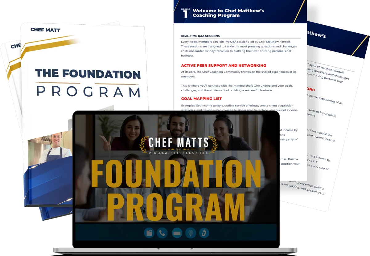 The Foundation Program is designed for chefs who want expert guidance and the right tools to build a sustainable and profitable personal chef business